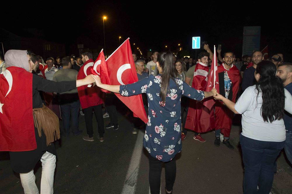 300 pro-Erdogan-betogers kwam richting politie gestapt. Ze werden tegengehouden door een veertigtal politieagenten in