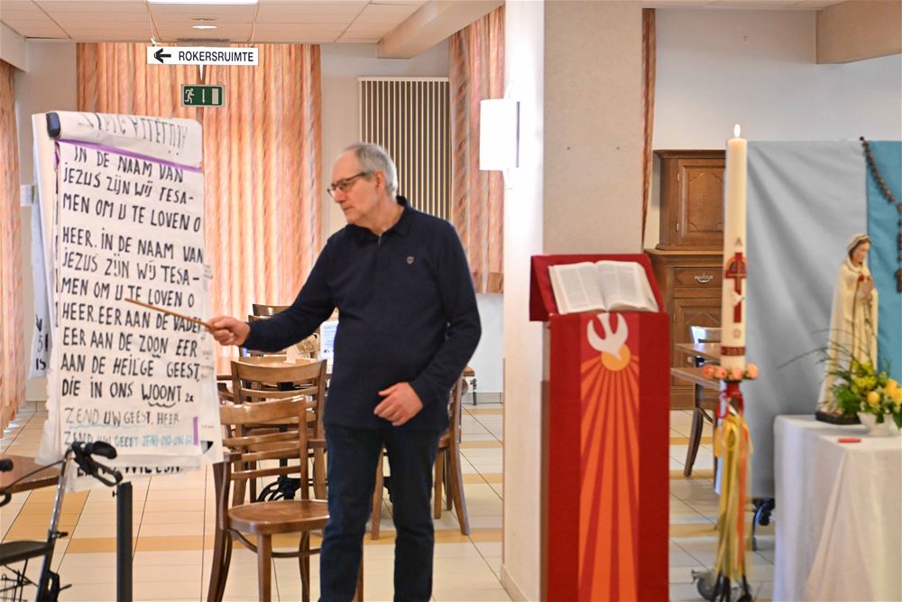 zegen 'Urbi et Orbi' uit. Dat is de zegen voor de stad en de wereld. In woonzorgcentrum Ocura in Beringen-Mijn werd deze ochtend een viering gehouden in de cafetaria waarbij de verrijzenis van Jezus werd herdacht.