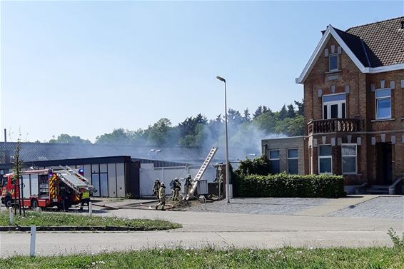 Commelo in Beringen. Het blussen moest gebeuren over de gesloten poort. De brandweer had het vuur snel onder controle. Wat de oorzaak van de brand is, wordt nog onderzocht.