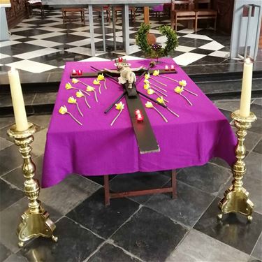 "Eerst de kruisweg en daarna een kruishulde zo hebben we in Beringen onze goede vrijdagdienst coronaproef kunnen doen. We wilden hulde brengen aan het kruis met een bloem. Hulde aan Hem die zijn leven gaf voor ons", zegt Els nog.