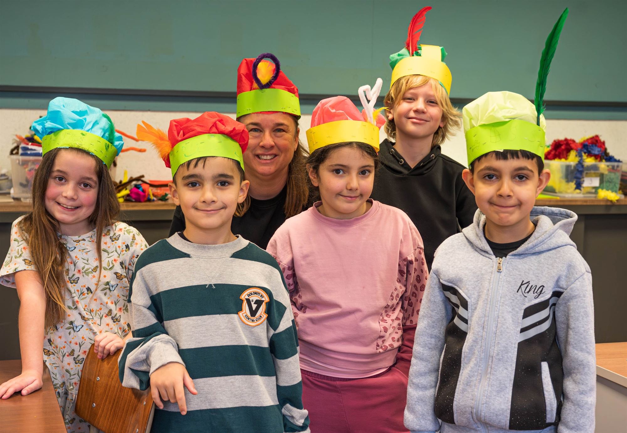 SBS De Hoeksteen in Korpsel zorgden voor een warm onthaal van de Sint met zelfgemaakte vlagjes, hoedjes en speculaas.