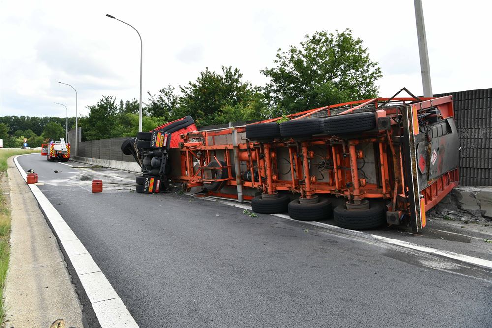 De oprit is hierdoor helemaal afgesloten en het verkeer moet omrijden. De tankwagen was geladen met vloeibaar plastic maar de tank scheurde gelukkig niet. De chauffeur geraakte er met de schrik vanaf. De tankwagen kantelde tegen de geluidsmuur, die werd hierdoor beschadigd. Ook een elektriciteitspaal werd geraakt. De brandweer kwam met verschillende ploegen ter plaatse om lekkende olie en benzine op te ruimen. Twee kranen werden opgetrommeld om de vrachtwagen te takelen. De oprit zal nog hierdoor nog een tijdje afgesloten blijven. Door het ongeval is het ook druk op de Paalsesteenweg.