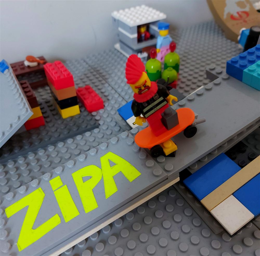 een bovenbeenprothese. "Team Zipa ontwierp een prothese-skateboard met Bluetooth waarbij het prothesebeen kan vastgemaakt worden met een sluitingssysteem rond de voet. Het sluitingssysteem kan geopend worden met de Blue Touch, een skatehandschoen met 2 drukknoppen die via Bluetooth in verbinding staat met het skateboard. Wanneer deze 2 knoppen gelijktijdig worden ingedrukt opent het sluitingssysteem onmiddellijk en klikt het prothesebeen los. Naast de Blue Touch bedachten ze ook de Blue Fit, een smartwatch die werkt met spraakherkenning. Wanneer je een commando geeft zoals 'los' gaat het sluitingssysteem open. Voor een betere stabiliteit werd er gekozen voor een langer en breder skateboard en grotere wielen en uitklapbare zijvleugels met wieltjes aan de voorkant van het skateboard. Deze zijvleugels zijn verkrijgbaar in allerlei designs zoals bliksemsflitsen, hamburgers, mc Flurry’s,...Om het skaten veiliger te maken bedachten ze een remsysteem met opklikbare rubberen remblokjes aan de achterkant van het skateboard. Naast het protheseskateboard ontwierpen ze ook een airbaghoodie om de skater te beschermen. De airbaghoodie is voorzien van bewegings-en snelheidsensoren die een val kunnen detecteren. Wanneer de skater valt komt er een airbagsysteem in werking die het hoofd, nek en de rug beschermt. Het airbagsysteem werkt met vervangbare gaspatronen. Het werd een leerrijk project en we werken met heel wat mensen samen. Naast dit onderzoek werd er ook een robot gebouwd en geprogrammeerd. We behaalden de hoogste score aan de wedstrijdtafel en behaalden hiervoor de robotprestatie award", zegt Juf Elly trots.
