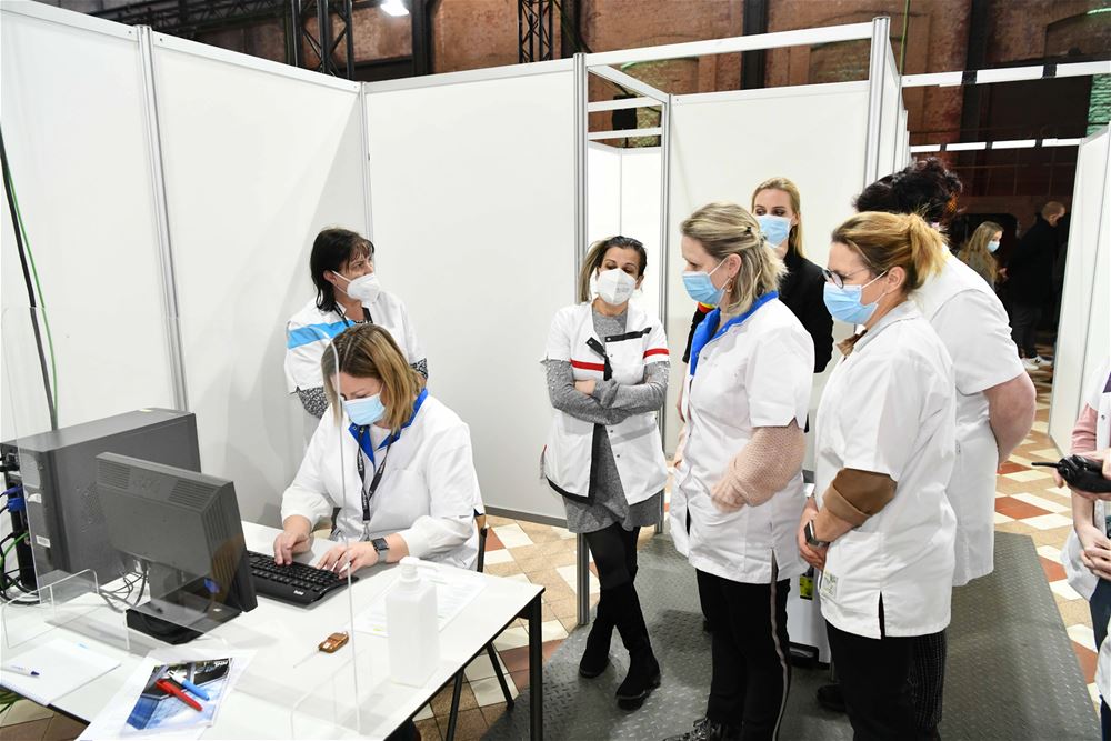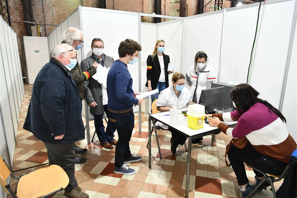 repetitie in het vaccinatiecentrum op be-MINE. Vlaams minister Wouter Beke en de burgemeesters van Beringen en Tessenderlo volgden de testdag. Ook een delegatie uit de buurgemeenten was present. De oefening met een groot aantal figuranten verliep op een bepaald moment heel realistisch toen één van de figuranten echt flauw viel.