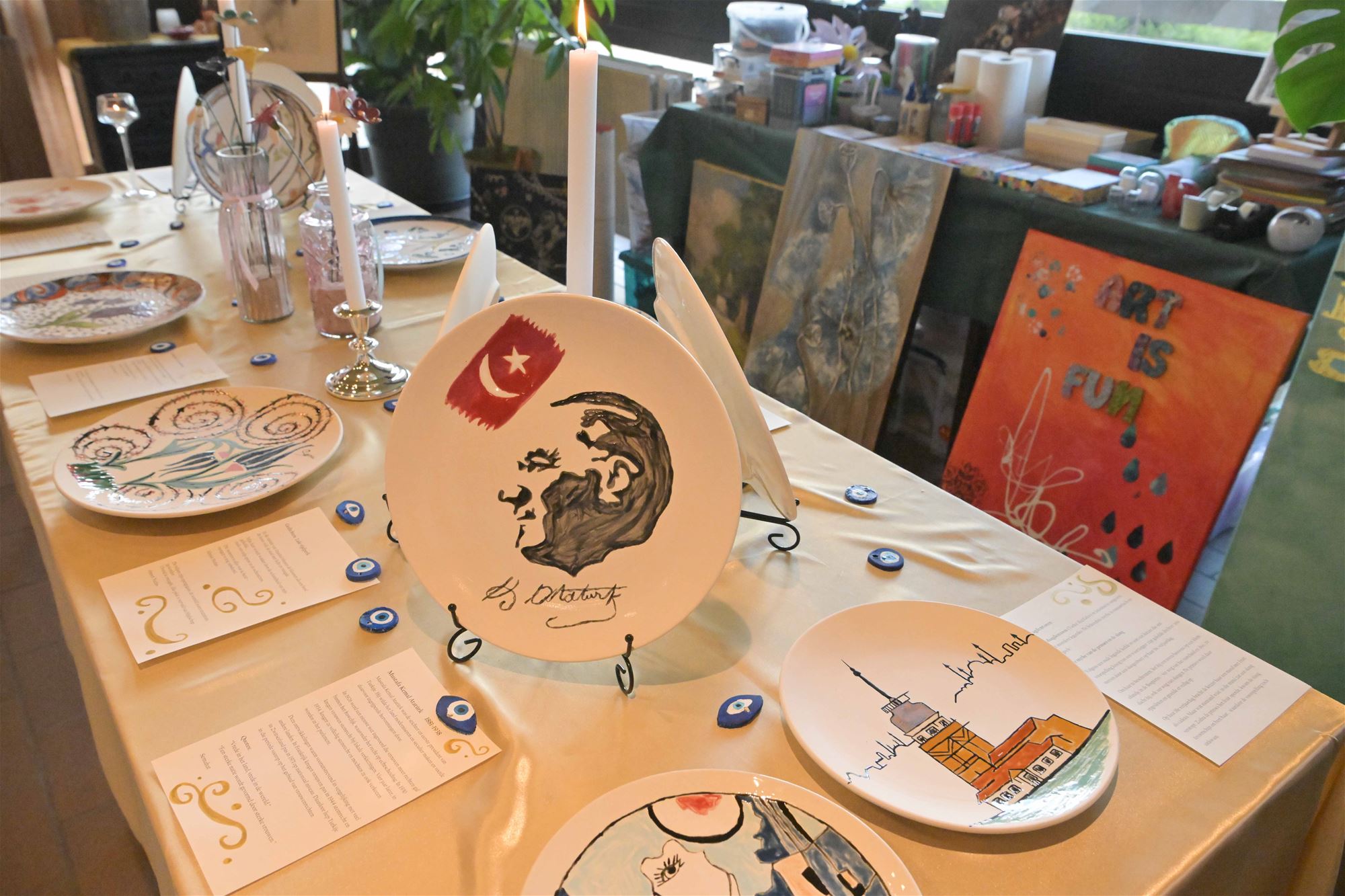 project 'Kunst spreekt alle talen'. Dit project is ontstaan vanuit Saamo Beringen naar aanleiding van de opstart van Zorgzame buurten in de wijken Steenberg in Paal en Kolmen in Beringen centrum. Onder begeleiding van kunstenares Myriam van ’t Ateliertje brachten de vrouwen uit deze wijken hun eigen kunstwerken tot leven in de stijl van Turkse keramiekkunst. En het resultaat mag gezien worden. De keramiekkunst werd alle eer aangedaan. Je kan de kunstwerken nog bewonderen tijdens de