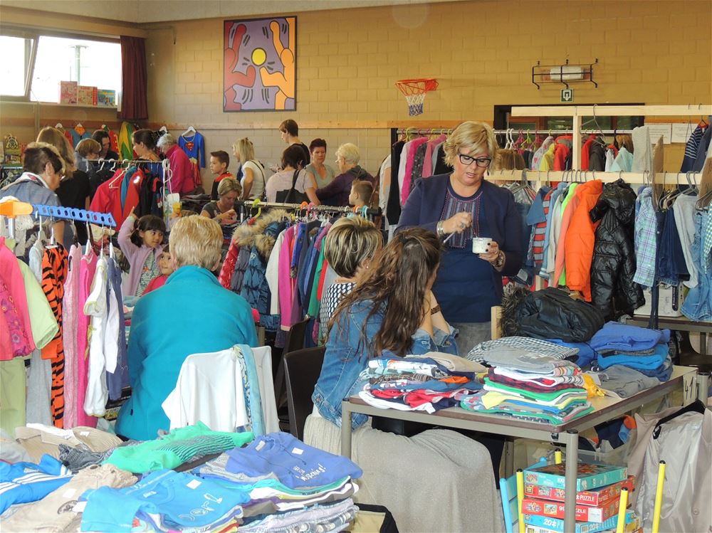 afgezakt die er hun spulletjes verkochten. De bezoekers hadden zo een ruime keuze uit kinderkledij en speelgoed. (