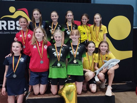 Belgische jeugdkampioenschappen in Antwerpen. Het team onder leiding van Kathleen Smet kwam naar huis met een hele reeks medailles en een hele hoop tijdsverbeteringen. Clubrecords sneuvelden en limieten werden gezwommen. In totaal namen 63 clubs deel aan het kampioenschap. "In de ranking eindigden we in de top 10 op de 8ste plaats en zijn we de beste Limburgse club. Gouden medaille, Belgisch kampioen 100 m rugslag Liah Vandevenne - gouden medaille, Belgisch kampioen 4x100 m wissel Noa Lambrechts, Fran Vertessen, Maya Frederix en Ella Vanhees - zilveren medaille 200 m wisselslag Charlotte Brouwers - zilveren medaille 100 m vrije slag Charlotte Brouwers - zilveren medaille 200 m schoolslag Fran Vertessen - zilveren medaille 100 m schoolslag Fien Put - zilveren medaille 4x100 m wissel Charlotte Brouwers, Aurélie Van Litsenborg, Fien Put en Liah Vandevenne - bronzen medaille 100 m schoolslag Charlotte Brouwers - bronzen medaille 100 m vlinderslag Liah Vandevenne - bronzen medaille 200 m wisselslag Liah Vandevenne - bronzen medaille 100 m schoolslag Fran Vertessen - bronzen medaille 4x100 m vrije slag Maren Poel, Aurélie Van Litsenborg, Liah Vandevenne en Charlotte Brouwers", zegt Ann Vanuytrecht trots.