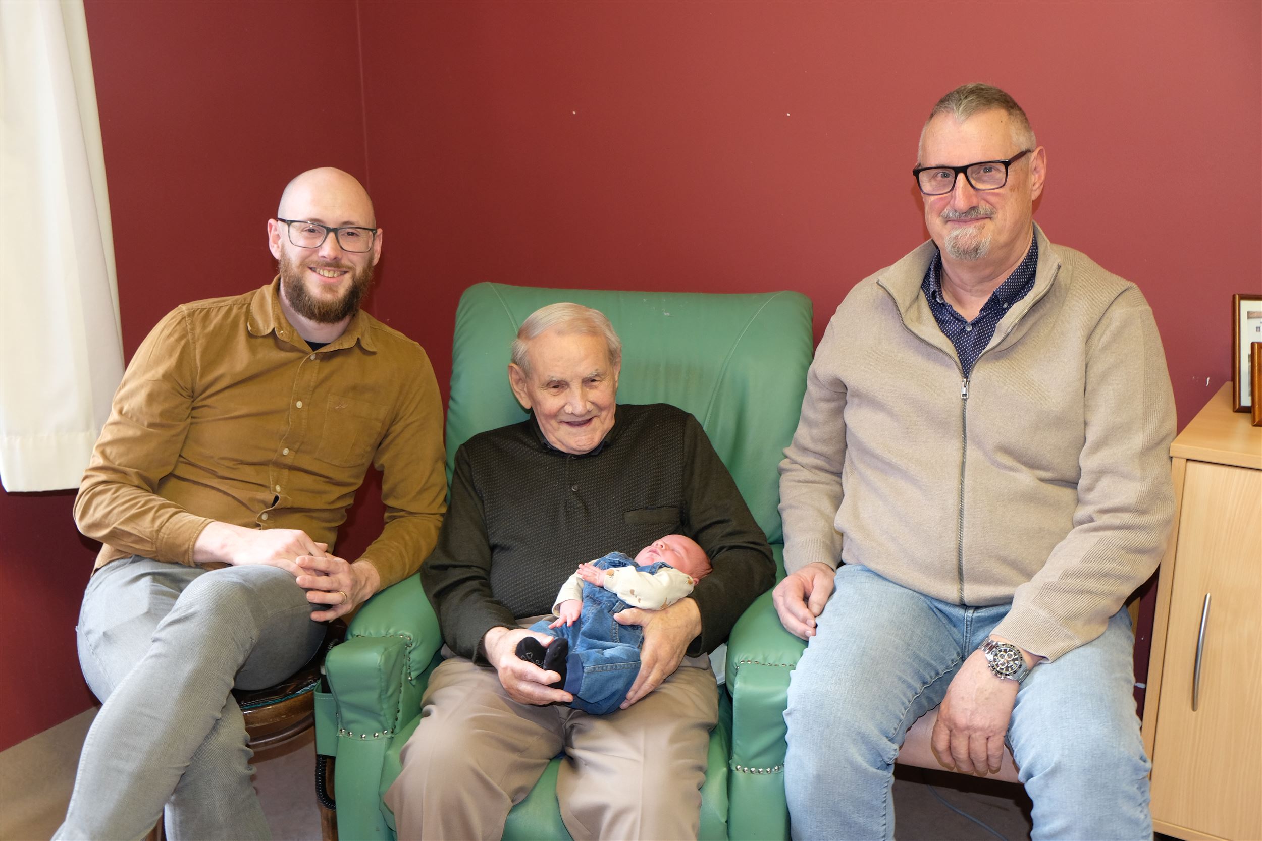 Felix Kaerts 94 jaar (°1931) uit Korspel, momenteel in Corsala, zich verheugen in een viergeslacht. Theo Theunis-Kaerts 67 jaar (°1959). Frederick Theunis- Kaerts 38 jaar (°1987) en zoontje Finn (°4 januari 2026)