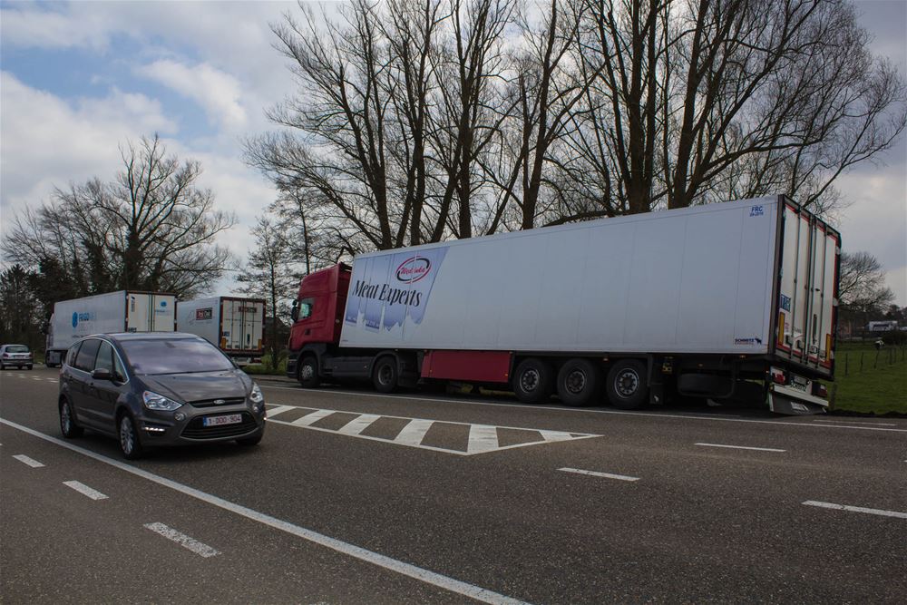 een vrachtwagen van de weg. De truck maakte deel uit van een konvooi Poolse vrachtwagens.