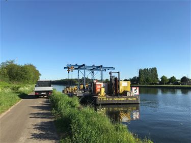 Wie regelmatig langs het Albertkanaal fietst heeft waarschijnlijk dit ponton al zien liggen. In opdracht van de Waterweg wordt er gewerkt aan het
