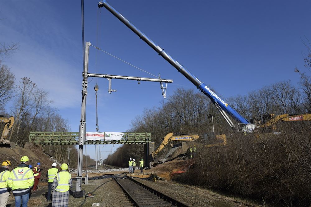 vier bruggen verhoogd en/of aangepast. Dit weekend startte Infrabel met de afbraak van de eerste brug, die van de