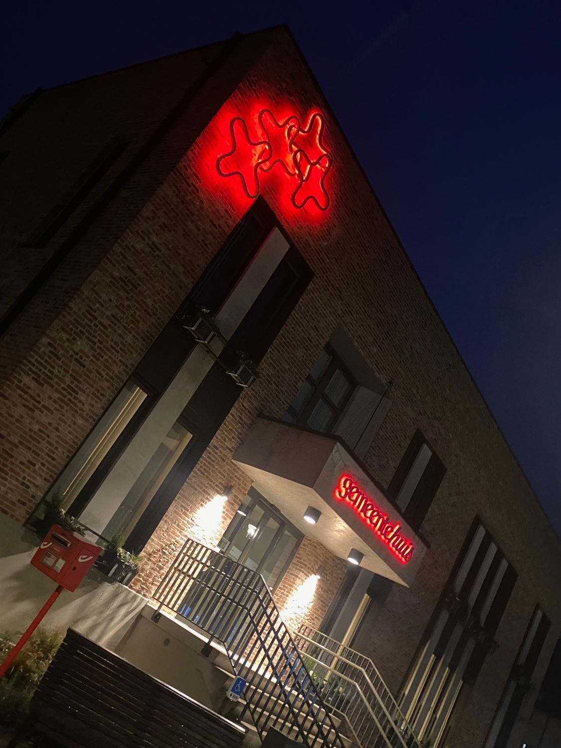 De rode gloed op het gemeentehuis springt meteen in het oog. Met deze zichtbare actie wil Bocholt het bewustzijn vergroten en duidelijk maken dat geweld — in welke vorm dan ook — nooit aanvaardbaar is.