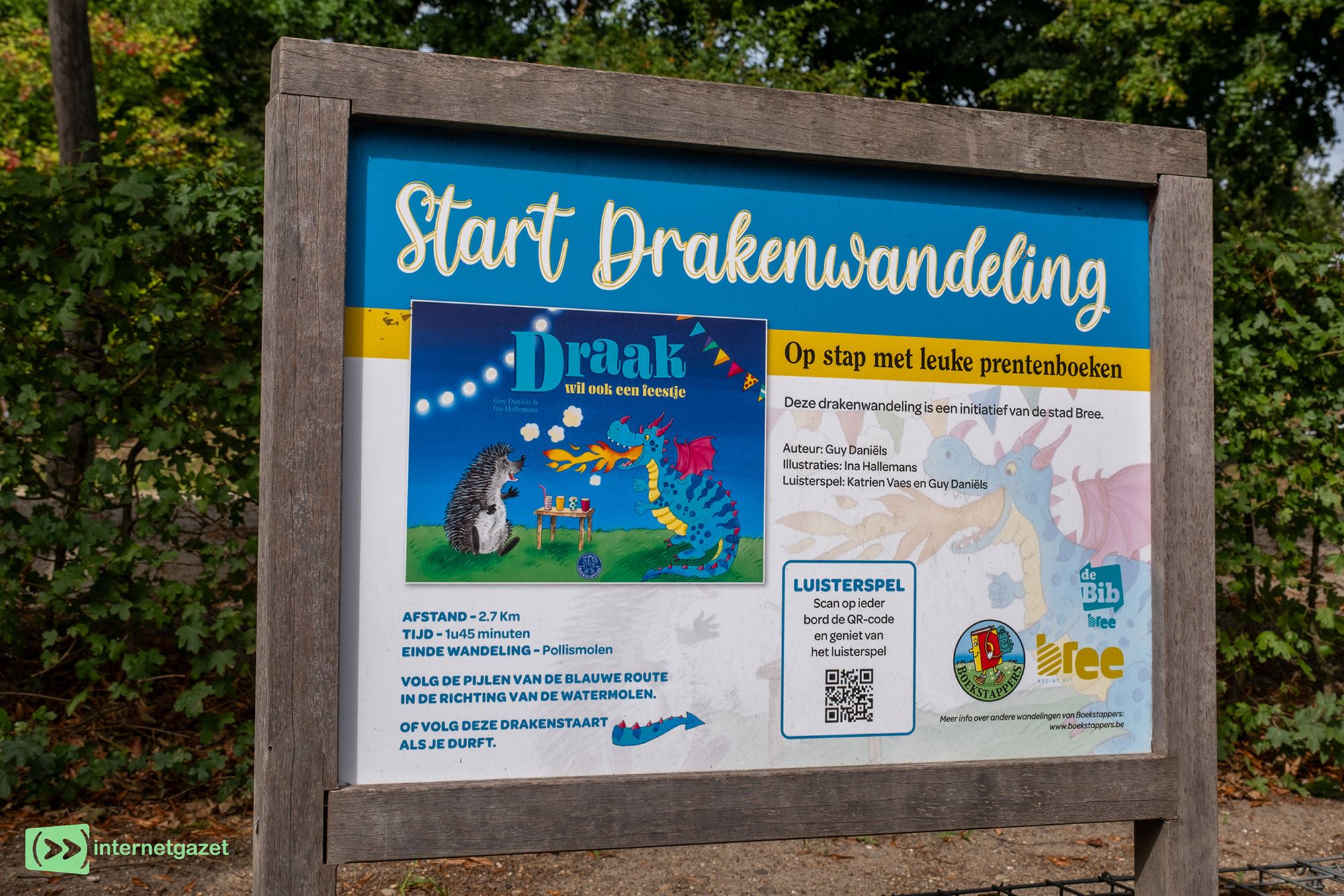 Langs het 2,7 km lange parcours ontdek je op 16 stopplaatsen stukjes van het verhaal, aangevuld met illustraties van Ina Hallemans.