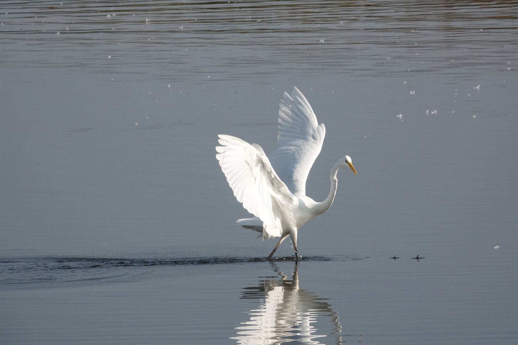 in Bree liet deze prachtige Grote Zilverreiger zich op een bijzonder sierlijke manier bewonderen. Met wijd uitgespreide vleugels leek hij bijna te dansen op het wateroppervlak.