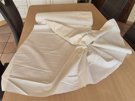 het linnen is 9 meter lang en 2.20 meter breed. 15 draden per centimeter.