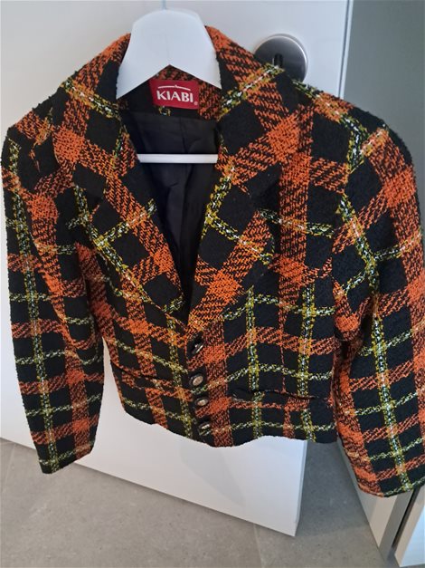 Kort wollen jasje. Maat = M Kleur= Roest/zwart geruit Praktisch nieuw.