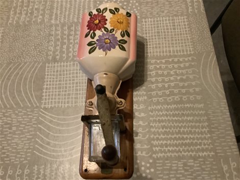 Oude koffiemolen te koop molen wordt bediend door zwengel te draaien is meer als 75 jaar oud .