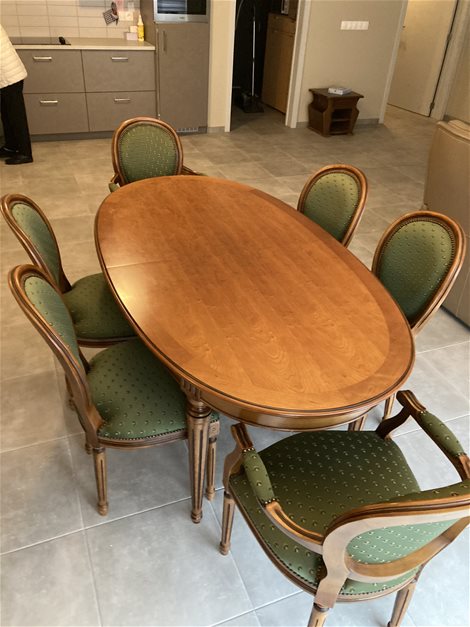Tafel met 6 stoelen kersenhout