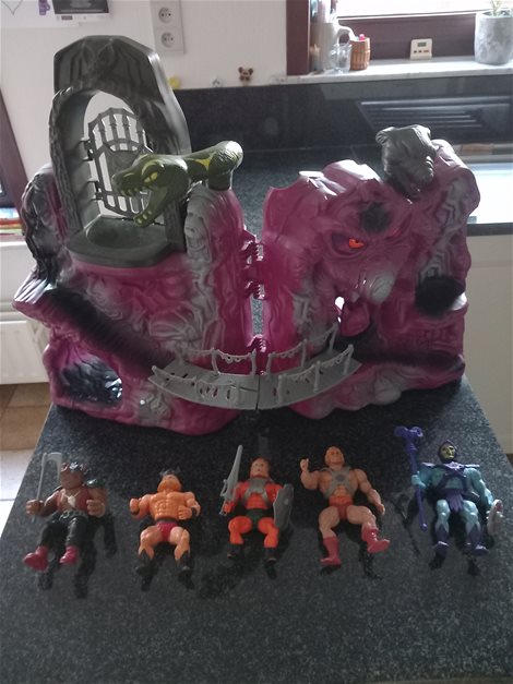 Aangeboden : 1 Skeletor kasteel, met 5 actie figuren. Aan de rechter zijde bovenkant , ontbreken 2 handboeien . Zie ook mijn andere zoekertjes