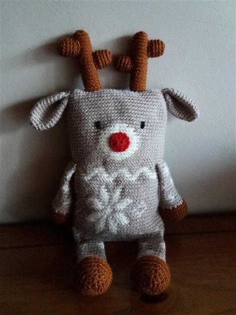 Hand gehaakt rendier om te knuffelen, kindvriendelijk aan elkaar genaaid 28 cm groot als het zit