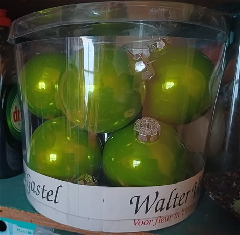 Nieuwe grote groene kerstballen. Diameter 10 cm. Nog in de verpakking... 30 stuks voor 10 euro
