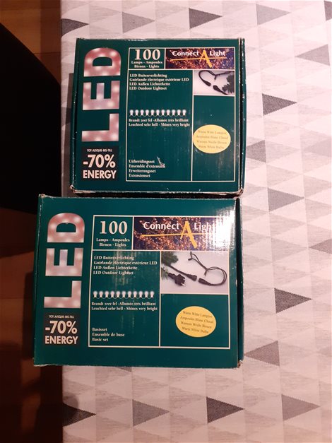 Twee reeksen van 100 lampjes. Kunnen aan elkaar gekoppeld worden.