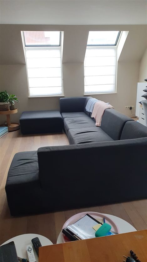 antraciet zwart zetel, vrij diepe zitplaatsen stof, Ongeveer 10 jaar oud. gratis afhalen, zonder kussens