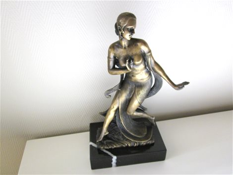 Prachtige sculptuur ondertekend door een bekende Franse beeldhouwer die actief was aan het einde van de 19e eeuw en het begin van de 20e eeuw, de odalisque, met vloeiende bewegingen in een oriëntaalse dans, zeer sensueel, afmetingen: totale hoogte 27,5 cm, breedte 14 cm, diepte 9,5 cm, gewicht ongeveer 2,5 kg.