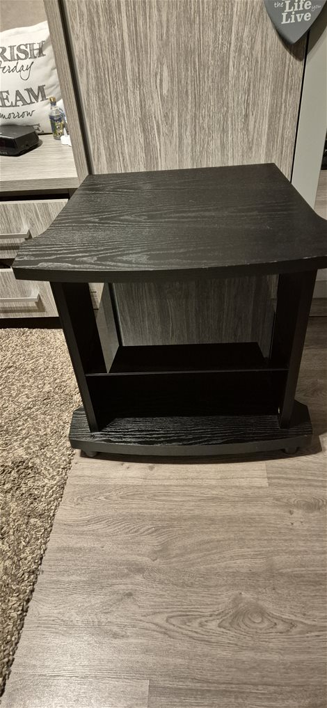Zwart tv kastje hoogte 57,5 cm Diepte 40cm breedte 58,5 cm smalle gedeelde achterkant 45.5 cm Met wieltjes nog in heel goede staat