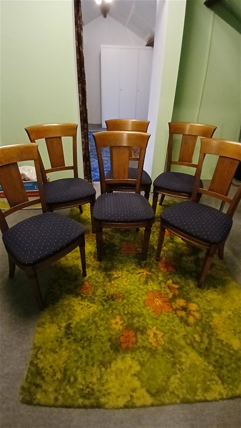 6 eiken stoelen met stoffen zit