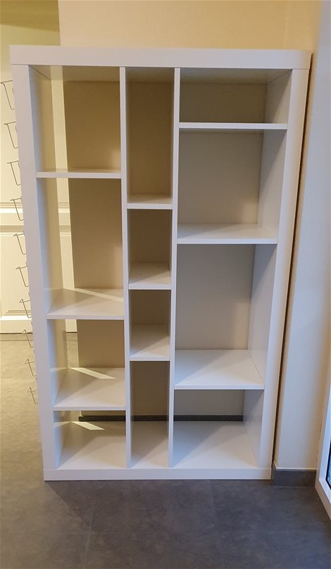 Open rek van Ikea Zo goed als nieuw! 88cm Br x 150cm H x 40cm Diep Aan de zijkant is er een postcardrekje tegenaan geschroefd. Dit kan er uiteraard vanaf maar zit er gratis bij. Leuk voor op kot of in woonkamer!