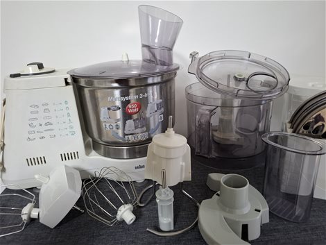 Braun multisysteem 3 in 1 te koop. Hakken snijden kneden mixen kloppen kneden...in goede staat werkt perfect.Alle toebehoren met boekje.