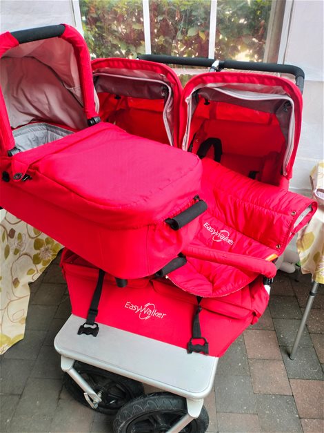 Merk:Easywalker, rode kleur, dikke wielen voor alle terrein.