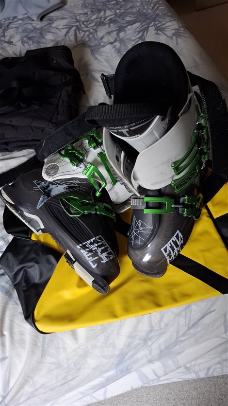 Ski-schoenen (mét tas), gebruikt maar toch nog in prima staat. Ze mogen weg wegens niet meer gebruikt... Maat 39? 40? Best even passen. Ook nog enkele skitruitjes, skisokken, zelfs een oude skibroek. Die krijg je zomaar mee, bij interesse. Bel Piet 0497 54 23 01.