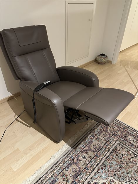 Elektrische relaxzetel met opstap en sta-op functie, hoge rug en zitkussen in harde uitvoering. Bruin lederen afwerking. Zeer goed onderhouden en zeer weinig tot niet gebruikt. Staat in een kamer waar geen gebruik van gemaakt wordt. Past perfect in ieder interieur. Kort samengevat: het is een koopje, wees er snel bij!
