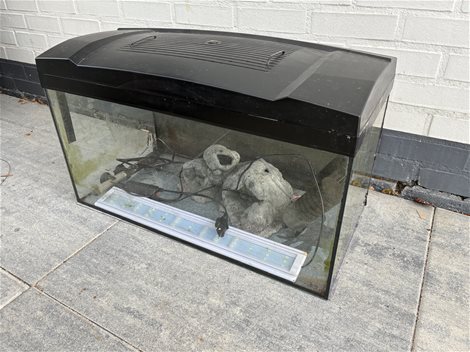 Aquarium leeg 54 L 60 x 30 x 30 met kap en led-verlichting, verwarming, filter en ornament, zie afbeelding. Kap is 8 cm hoog. Doe een serieus bod. Zie ook mijn andere advertentie aquarium.