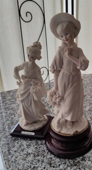 2 beeldjes. Hoogte beeld met hoedje = 28 cm Hoogte beeld van achter = 22 cm. Af te halen in Lommel