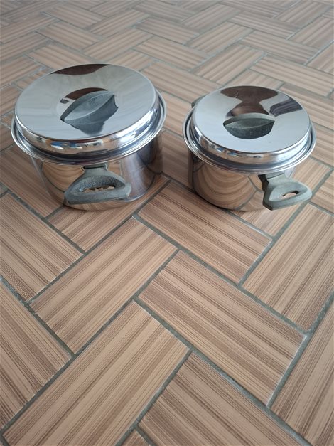 Twee kookpotten. Niet voor inductie. Inox 5€ stuk Enkel ophalen en contant betalen en niet via bankgegevens.