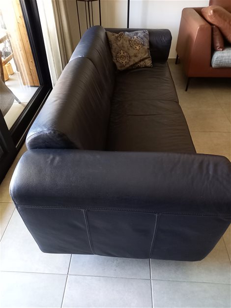 Stevige lederen zetel.Donker blauw 2m35l
