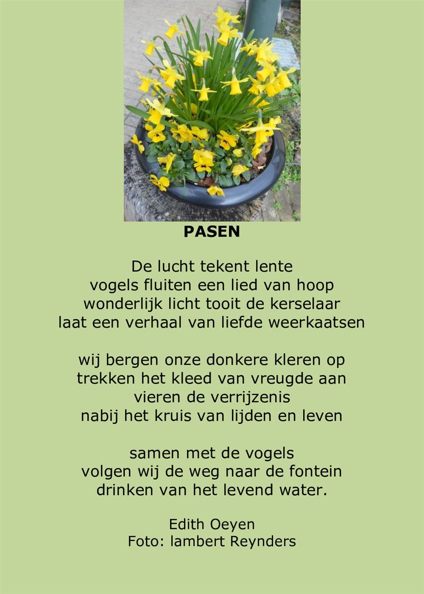 De wekelijkse poëtische woorden van Edith staan vandaag in het teken van Pasen.
