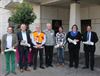 Burgemeester en schepenen van Hamont-Achel gaven alvast het goede voorbeeld en kochten elk een sticker uit de handen van voorzitter Jan Van Asten en Jef Bloemen.