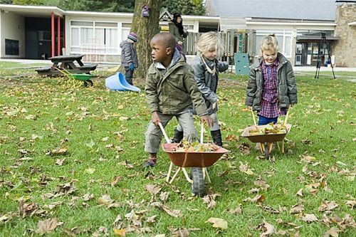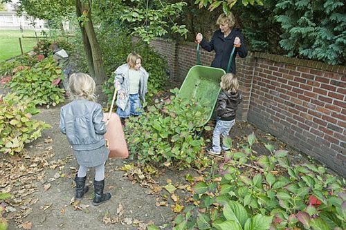 Ze kregen dat logo van milieugedeputeerde Smeets omwille van al hun acties: ze maakten voederbollen en pindanootkettingen, legden een moestuin aan, timmerden nestkastjes, organiseerden een zonnebloemwedstrijd, installeerden een regenton, een insectenhotel enz.. En vandaag, toen de gedeputeerde op bezoek kwam, gingen ze onder meer bladeren ruimen...