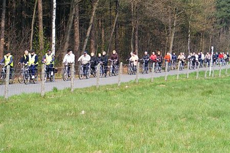 (foto: in de buurt van de kluis). Ervaren en zorgzame wegkapiteins zorgen daarbij al jaren voor goede zichtbaarheid en veilig oversteken. En natuurlijk hoort er een lekkere koffie of pintje bij op een of ander terrras. Bij zulke fietstochten is iedereen welkom. Er wordt in twee groepen gefietst aan een aangepaste snelheid. Vraag de fietskalender aan bij de seniorenvereniging van Hamont-Achel!