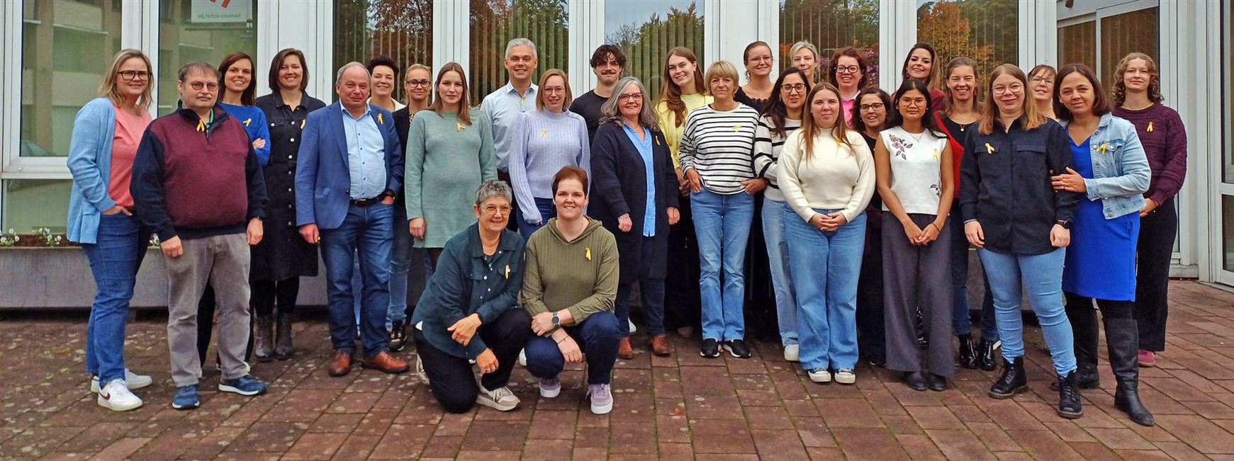 symbolische gele lintje op de Dag tegen Kanker. Daarmee willen ze kankerpatiënten en hun naasten een hart onder de riem steken en tonen dat ze er niet alleen voor staan.