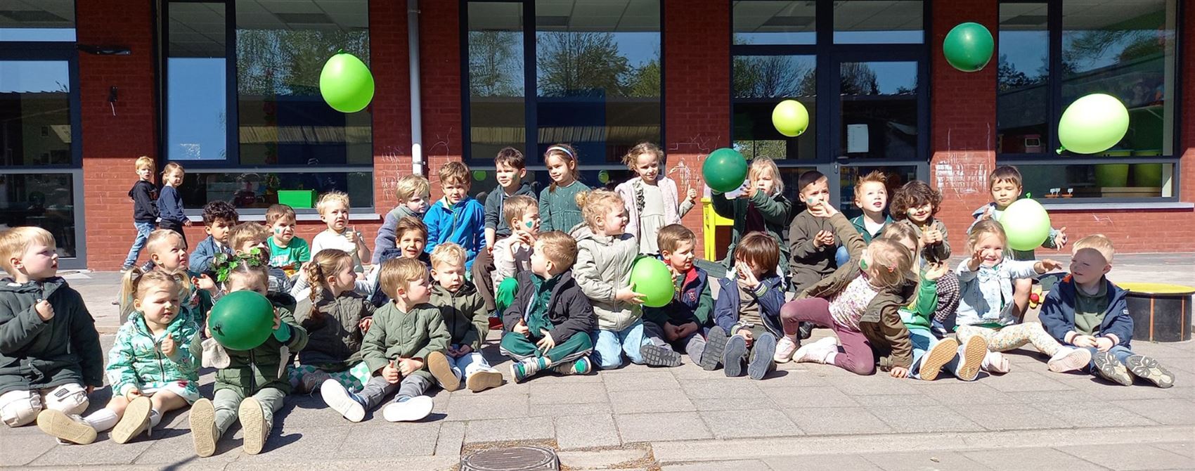 basisschool De Achellier helemaal groen. Leerlingen en leerkrachten kwamen in groene kledij naar school en genoten van een extra lange speeltijd met bijkomende speelmogelijkheden.