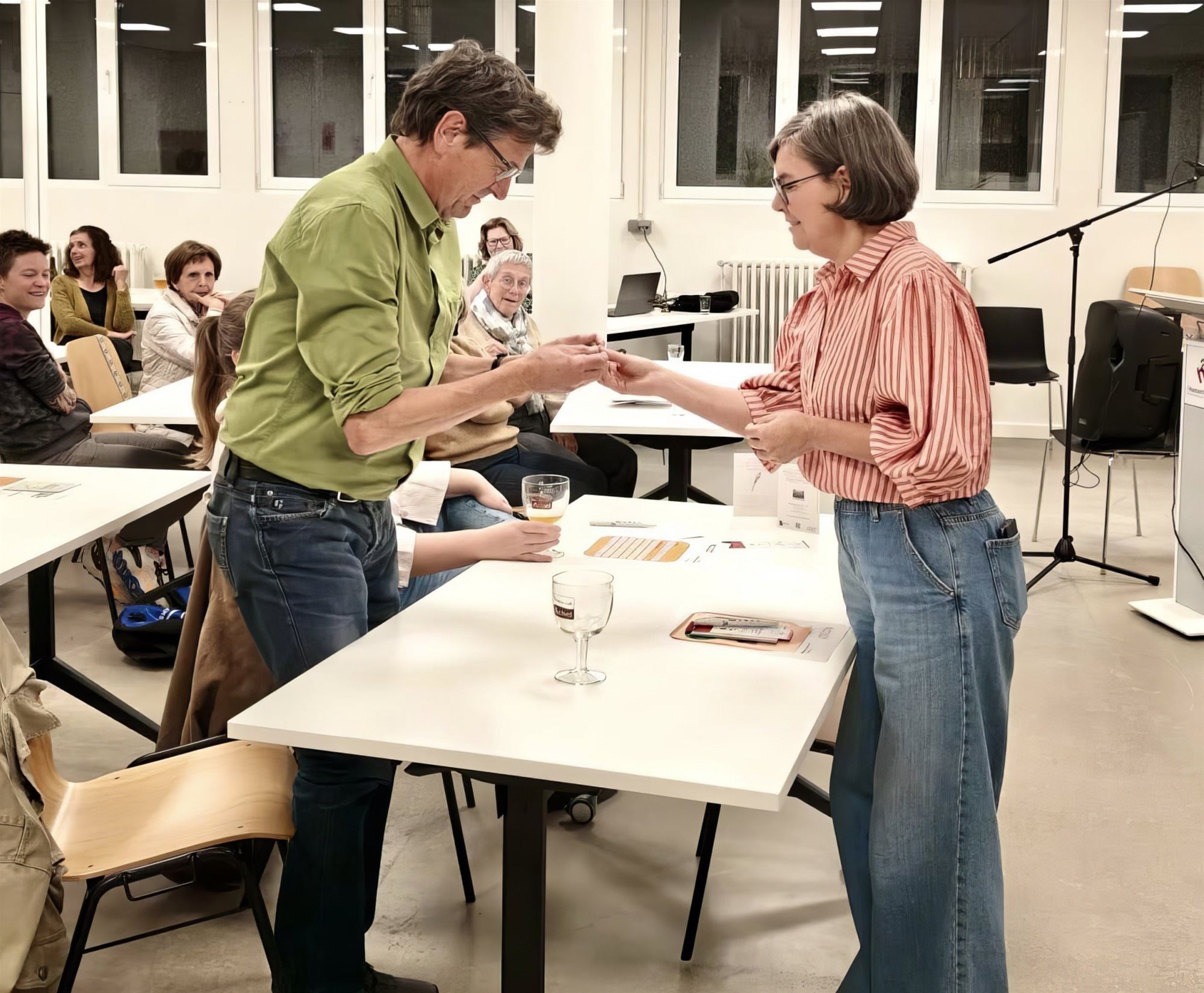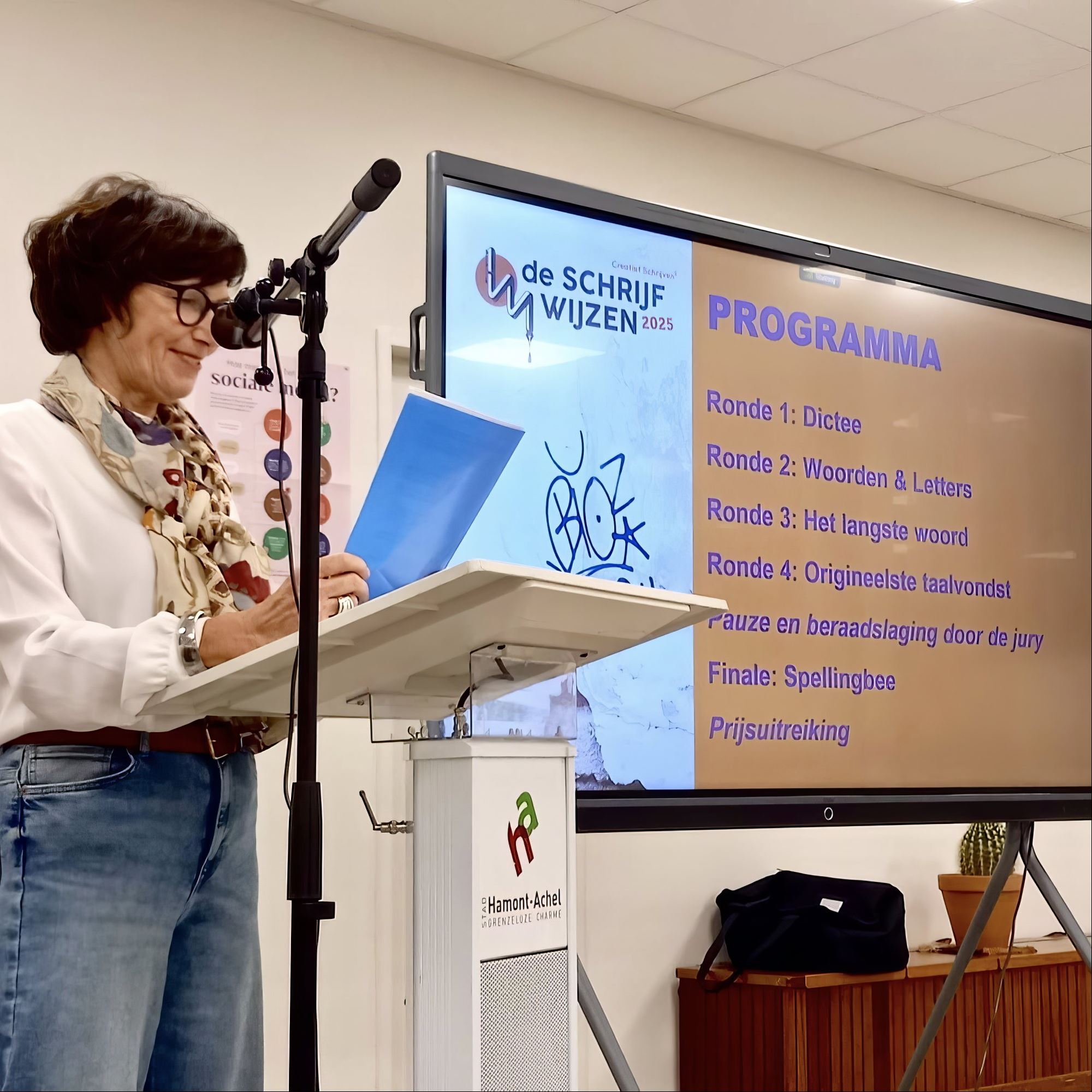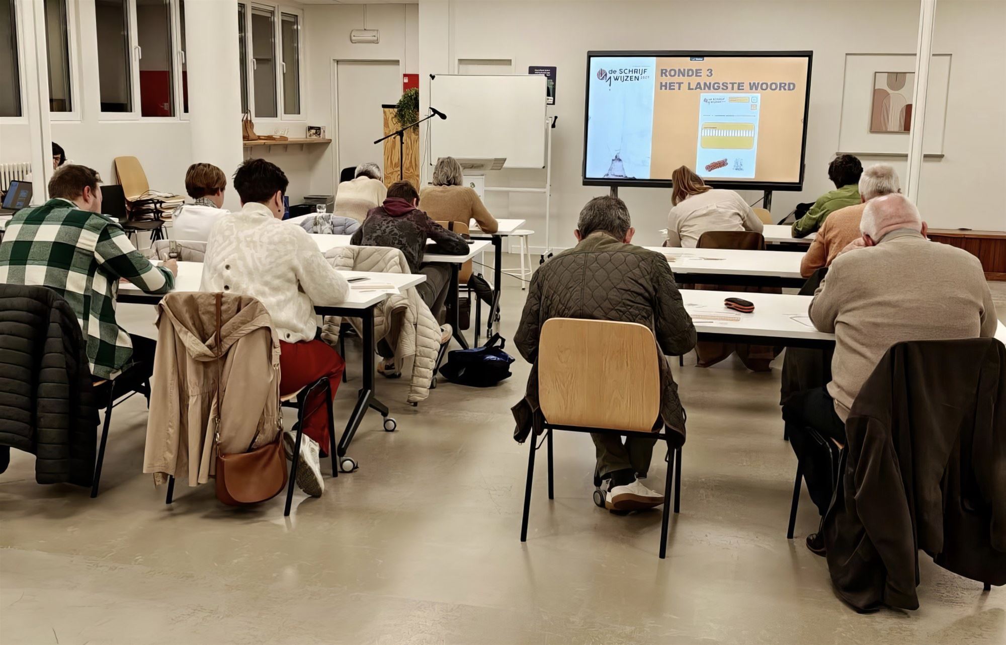Met een foutloos dictee én het langste woord (Leesberichtjes) kroonde Guy Mangelschots zich uiteindelijk tot absolute schrijfheld van de avond. Proficiat! De bib duimt er alvast voor dat hij op 25 oktober ook in de grote finale in Antwerpen de titel Schrijfwijze van 2025 en de hoofdprijs van €800 in de wacht sleept.
