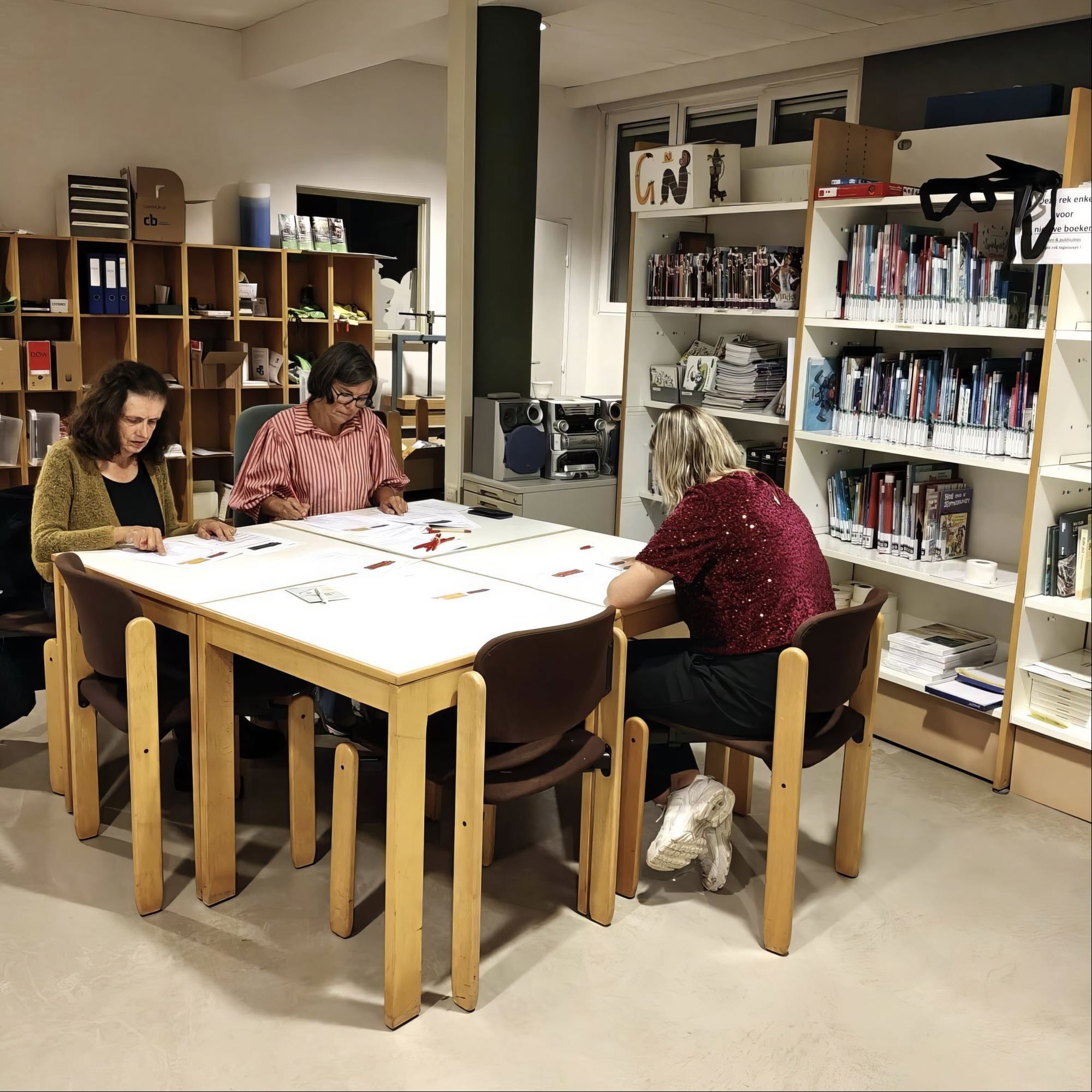 Met een warm welkom leidde de bibliothecaris – of moeten we intussen zeggen werfleider? – vrijdagavond elf enthousiaste taalliefhebbers naar het vergaderlokaal op de derde verdieping, dat voor één avond omgetoverd werd tot een klaslokaal. Daar konden ze hun tanden zetten in onze taal tijdens