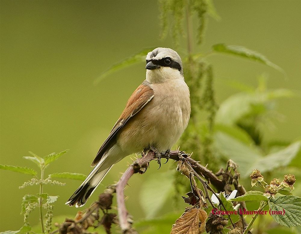 de familie Grauwe Klauwier. Jos Keppens slaagde er in, de gezinsleden alledrie op de foto vast te leggen. Hierboven klein Grauw Klauwiertje, hieronder achtereenvolgens pa en ma. De Grauwe Klauwier is erom gekend dat hij zijn prooi - insecten, hagedissen, muizen,... -