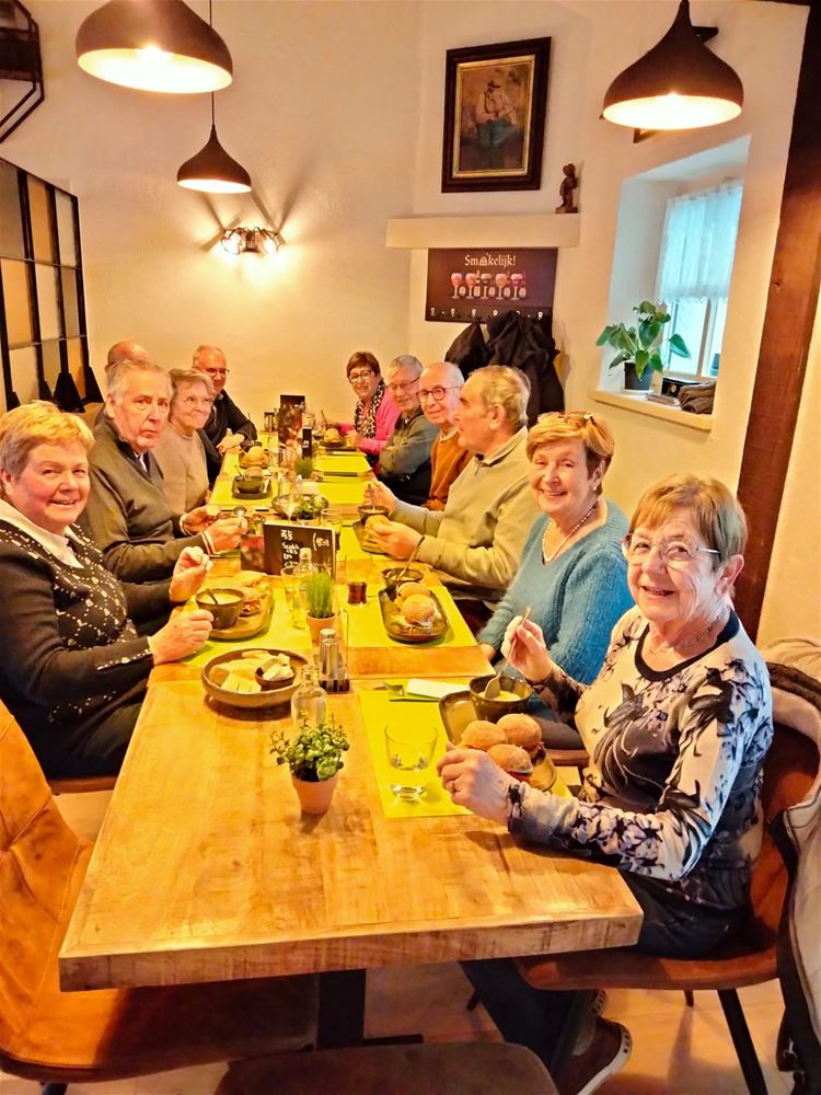 Na een deugddoende tas koffie en een gezellige babbel werd opnieuw verder gestapt, dit keer richting De Vègtes. Daar werden de wandelaars bijzonder hartelijk ontvangen door Daisy en Koen, die hen een heerlijke lunch serveerden. Een welgekomen traktatie na een tocht van zo’n 10 kilometer.