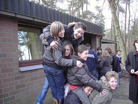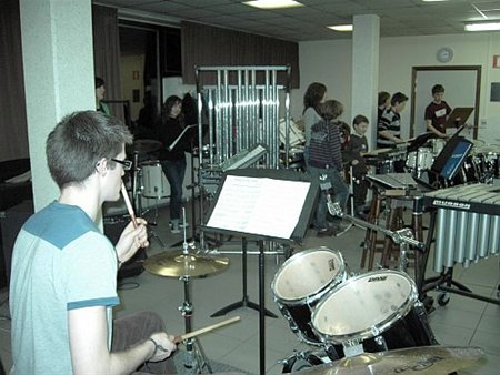 op muziekkamp in de scoutsrally in Neerpelt. Tijdens deze muziekdriedaagse werd er natuurlijk veel gerepeteerd maar de begeleiding had ook voor de nodige ontspanning gezorgd: van een schriktocht, een Disneyquiz en competitiespelletjes tot een heuse miss- en misterverkiezing. Van verveling was er geen sprake...